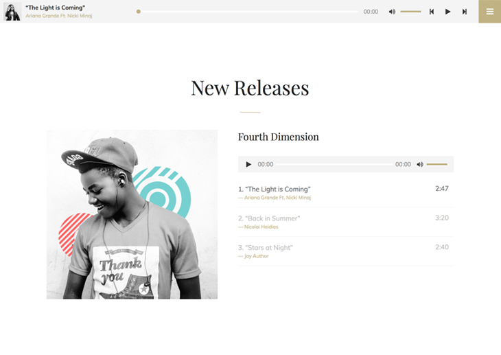 Music Player A built-in music player with a good set of fresh tracks for your audience to keep them engaged and entertained!