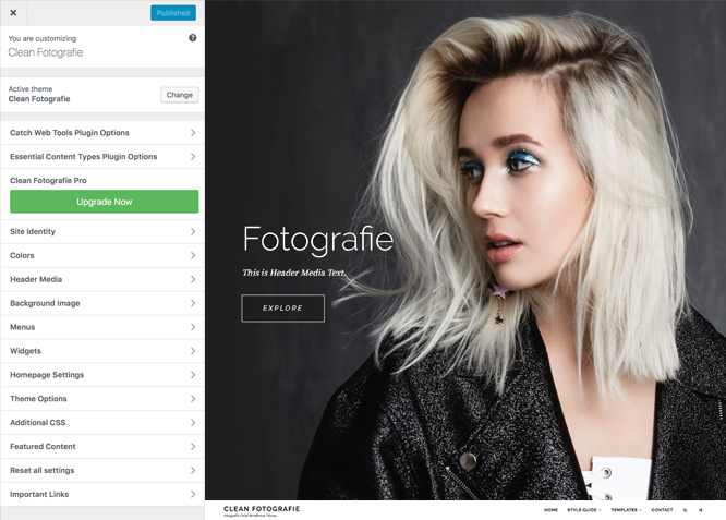 Clean Fotografie is a feature-rich, simple and Clean Photography WordPress Theme and if specially designed for creative personas to showcase their creative and professional photography to the world at large. It is a child theme of our popular photography WordPress theme, Fotografie. Clean Fotografie comes with an array of key features for your creative website to stand out among others. True to the essence of its name, Clean Fotografie is simple, clean, elegant and feature-rich. It is ideal for creative people, such as, Artists, Graphic Designers, Illustrators, Photographers, Bloggers, and other Creative Agencies who desire to showcase their high-quality work with minimal interference. Clean Fotografie comes with amazing features—like header media options, hero content, color options, menu options, and more—that are crucial to take your photoblog website to next level. The theme is extremely responsive and functions beautifully across all devices. Its minimal and responsive design gives your website a sleek and professional look. This theme is translation ready. For more details check out the Theme Instructions.