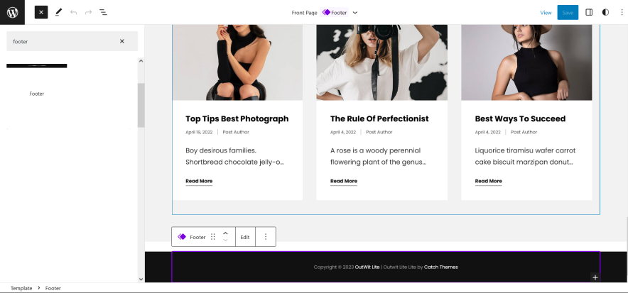 4. Edit footer default by clicking on the content itself, you can replace the copyright information, change links and text
