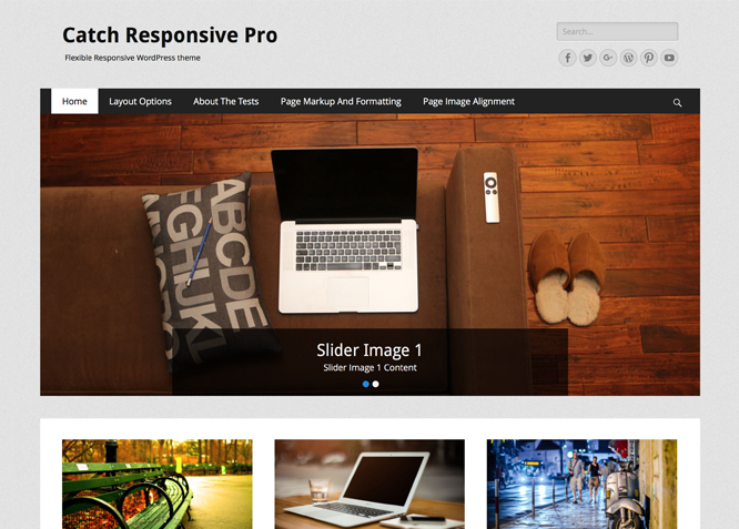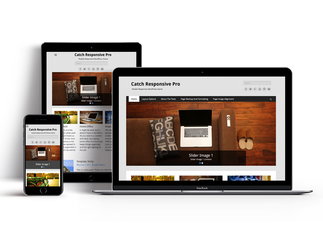 Catch Responsive Pro is an advanced version of Catch Responsive free WordPress theme. Catch Responsive Pro is an extremely flexible and customizable Responsive WordPress theme suitable for almost any kind of professional website. It is based on responsive web design where each element has been carefully configured for perfect display on all devices and platforms. It is built in HTML5, CSS3 and WordPress Theme Customizer for real time theme customization. It comes with a wide variety of options so you can modify layout, styling, colors, fonts, featured content, promotion headline, featured slider, pagination, icons, menus, breadcrumb, widgets and much more, directly from WordPress theme customizer. This theme is translation ready. For more details check out Theme Instructions.