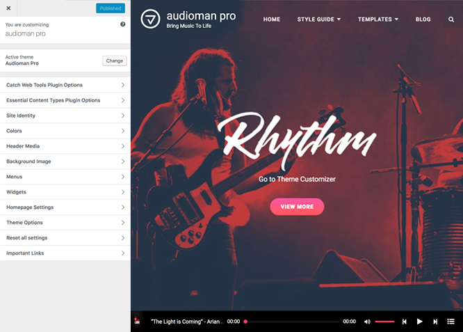 Audioman Pro is a well-designed, modern and trendy Premium Music WordPress theme built for musicians and bands that focuses on promoting their music and events. The theme is very easy to use and provides you with amazing musical features that help in building a complete and custom music website right away. Its homepage is dominated by your music logo, tagline, and an amazing header media option where you can choose an image or a video for your header. With features like events, featured video, font family options, gallery, header top playlist, hero content, playlist, portfolio, section sorter, team, testimonials, WPML ready, WooCommerce integration, and more give you plenty of customizing power. You can craft an outstanding WooCommerce marketplace to sell your music merchandise and provide a multi-language experience for your followers. All the built-in features and support you need as an artist or a band are included in Audioman Pro that flaunts your musical projects in an aesthetic manner that is easily attention-grabbing.