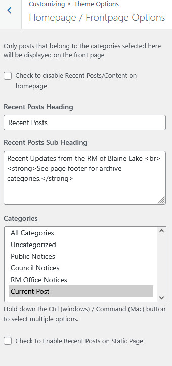 Whatever category clicked for this box below creates the problem (since that is what appears on the home page of course). I tested using ‘uncategorized’ AND ‘current updates’ as the option to appear on the home page.