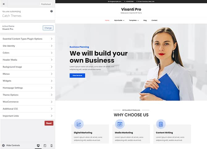Visanti Pro supports Why choose us section, here you can add type as Post, Page, Category or Custom.