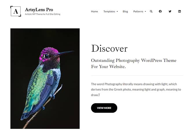Artsy Lens supports Hero Content, here you can highlight certain content of your website.
