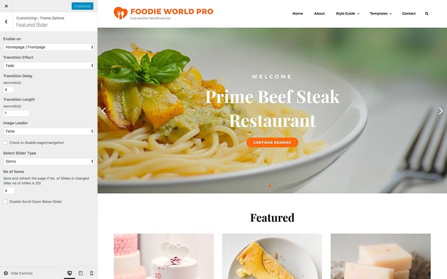 - Featured Slider: Option to enable Featured Slider on Homepage, Entire Site or Disable it completely. Option to choose page as featured slider