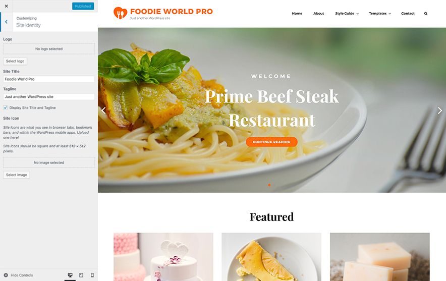 - Site Identity: Option to add/edit Custom Logo, enable/