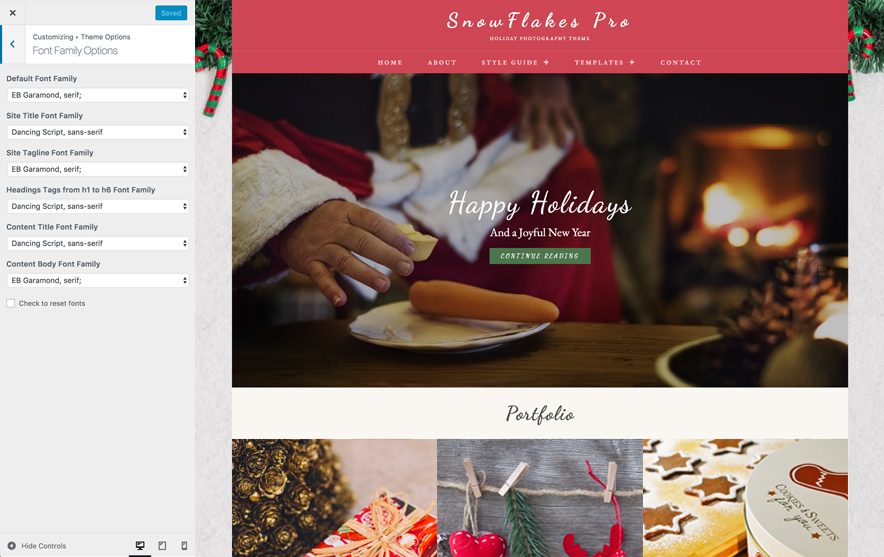 Snowflakes Pro is a modern Christmassy photography WordPress theme that provides high-quality features with minimal design. It is the child theme of our popular photography WordPress theme, Fotografie Pro. The theme is simple, clean and gives your website a warm and welcoming look of Christmas with its vibrant color palette. Snowflakes Pro is a visually charming and impressive, graphically polished and seamless, engaging and dynamic, deeply creative and very easily customizable seasonal WordPress theme. The theme comes with basic features that are extremely crucial for your photography website, such as header media options, hero content, color scheme, featured content, featured slider, and more. All the power-packed features in Snowflakes Pro will definitely live up to your expectations from a creative Christmassy photography WordPress theme. So, give your photography website a warm festive look this Christmas with our new seasonal photography WordPress theme. The theme is extremely responsive and functions beautifully across all devices. To top it all, the theme is translation ready.