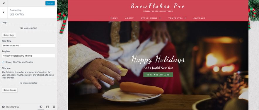 - Site Identity: Option to add/edit Custom Logo, option to enable/disable logo