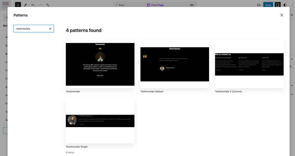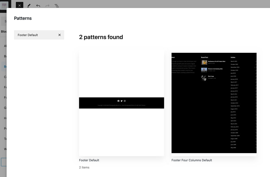Here is the list of Patterns Bold Photography Blocks Pro supports including patterns from FSE Pro Plugin.