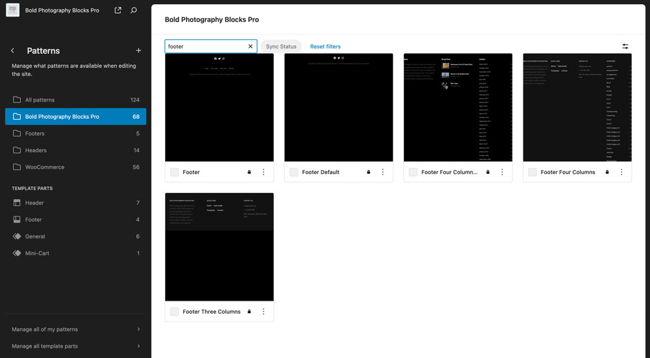 There are 16 Template Parts in Bold Photography Blocks Pro.