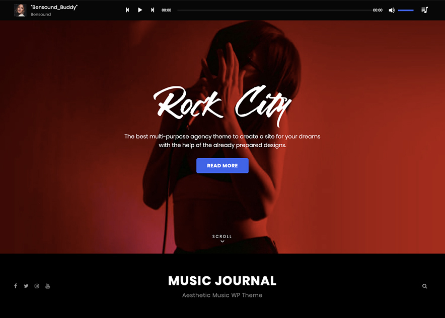Want a clean free music WordPress theme with top-notch features and a strike-on design? Look no further than My Music Band. It is a music theme that provides everything an artist would desire from his music website. There are sections like hero content and featured content where you can display your exciting new music information to your audience. If you want your audience to not get bored while surfing through your site, you can add a soothing or a nice set of songs in the Playlist section as well. My Music Band is fully responsive and resizes fittingly to all devices. There are plenty of other features included to help you build your music site. For instance, Featured Slider, Portfolio, Color Options, and more. All of the features in My Music Band help you to build a supreme and engaging music website.